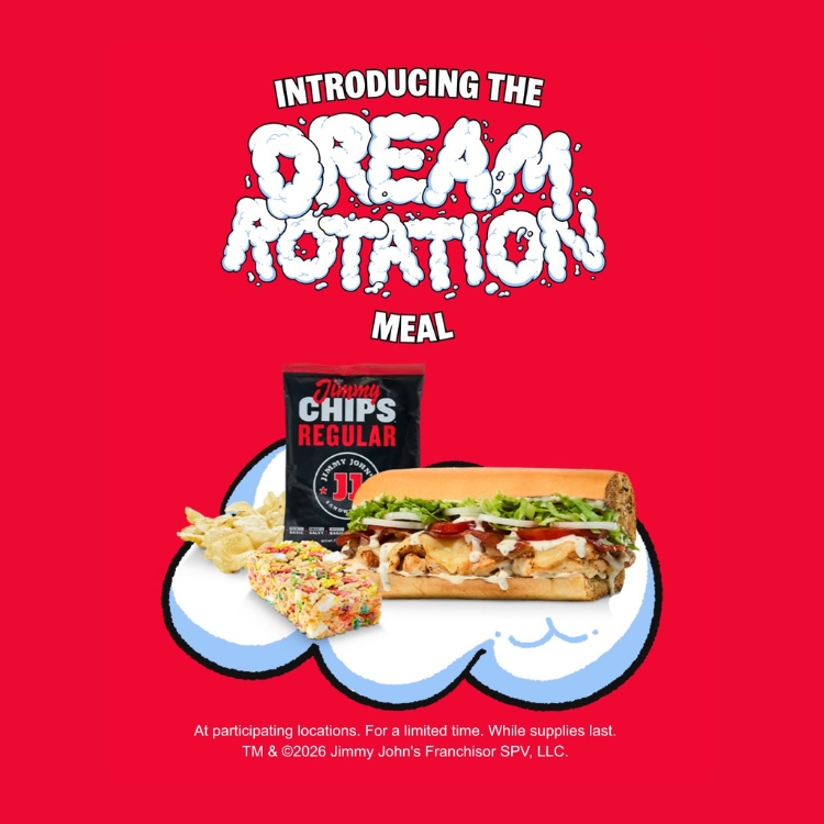 Sandwich chain Jimmy John’s is dropping its “Dream Rotation” limited-time menu for the occasion, with sandwich+munchie pairings created by celebrities including Cheech Marin, Skyler Gisondo, Amanda Batula and Kal Penn. Offerings include the Wake n’ Bacon (B.L.T. with BBQ Jimmy Chips), Sauced (Beach Club with Salt & Vinegar Jimmy Chips), Spicy Session (Spicy East Coast Italian with Jalapeno Jimmy Chips) and The OG (Italian Night Club with Salt & Vinegar Jimmy Chips). All sandwiches, of course, are served toasted, and each combo includes a Cereal n’ Milk Crispy treat.